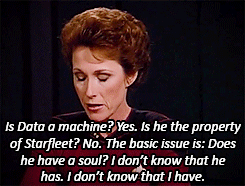 TNG 2×9 ‘The Measure of a Man’: Data’s sentience is brought into question when he is forced by Starfleet to undergo an undesired procedure. DarkestElemental616 August 27, 2018December 6, 2018 Published by DarkestElemental616 Moved here in the wake of the great tumblr nsfw purge of 2018. What's currently here are my archived posts from that blog. Multi-fandom artist and writer. I also have a DeviantArt under the same username. View all posts by DarkestElemental616 Published August 27, 2018December 6, 2018