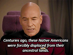 TNG 7×20 ‘Journey’s End’: The Enterprise is ordered to relocate a population of Native Americans from their planet of 20 years because of a treaty with the Cardassians.