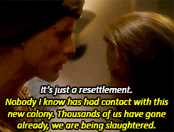 VOY 3×6 ‘Remember’: B’Elanna experiences the memories of a telepathic woman’s youth, where her lover and his people are relocated and murdered without repercussion.