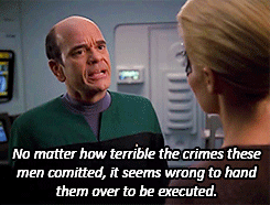 VOY 7×13 ‘Repentance’: Voyager rescues passengers from a prison ship whose prisoners are on their way to be executed. DarkestElemental616 August 27, 2018December 6, 2018 Published by DarkestElemental616 Moved here in the wake of the great tumblr nsfw purge of 2018. What's currently here are my archived posts from that blog. Multi-fandom artist and writer. I also have a DeviantArt under the same username. View all posts by DarkestElemental616 Published August 27, 2018December 6, 2018